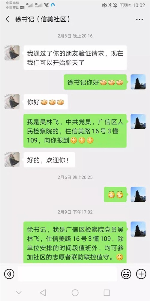 “这个时候我们党员不冲上去,谁冲上去?”广信区检察院43名党员积极报名参与所在社区的疫情防控志愿服务活动,担任社区志愿者、楼栋志愿者,负责返饶人员登记、防护提示、接洽居委会做好通行证派发等事宜,担起了“宣传员”、“排查员”、“守门员”,积极投身疫情防控第一线,协助缓解抗疫防控中社区人员紧张的困难。“听党话,跟党走,打胜仗!”党员带头进行“最美逆行”。在防控疫情斗争第一线,党员干部关键时刻冲得上去、危难关头豁得出来,以坚定的信念和行动,彰显了“疫情就是命令,防控就是责任”的政治自觉,展现了当代共产党人的英雄本色。截至目前,广信区人民检察院有43名党员参与社区报到,除怀孕待产、自我隔离等其余全部参与社区值守,其中3人驻村长期服务。全院党员干警坚守“小家”的同时支持“大家”,用一束束志愿者微光,照亮抗疫攻坚的一片片家园。