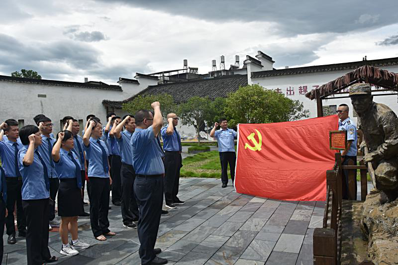 在石塘镇新四军革命旧址,党员干警面向鲜艳的党旗庄严宣誓,通过重温入党誓词,进一步坚定了理想信念,接受了一次灵魂的洗礼,提高了党性修养。在随后开展的“读一封家书”活动中,干警们追寻着革命先烈的足迹,感受革命先烈穿梭于悬崖峭壁之间和敌人斗智斗勇、浴血奋战的英姿和不畏,细心瞻仰每一处“红色”遗址,重温革命历史。