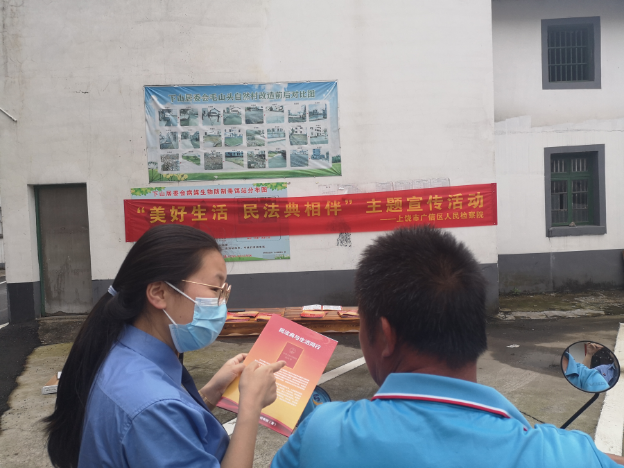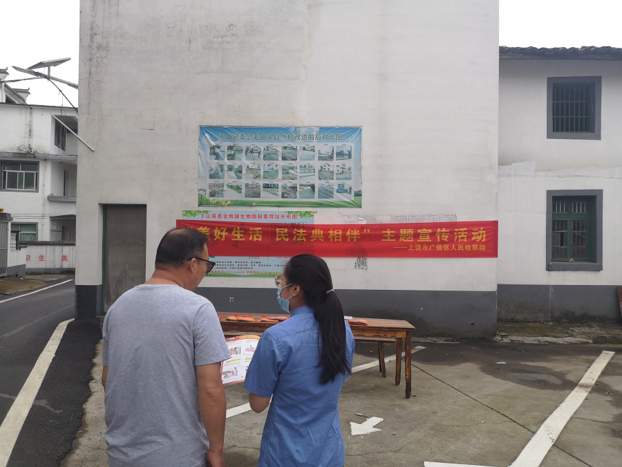 5月28日,正值《中华人民共和国民法典》颁布一周年,上饶市广信区人民检察院赴包干网格点罗桥街道下山居委会开展“我为群众办实事”实践活动暨“美好生活 民法典相伴”主题宣传活动。