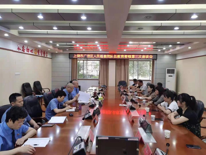为深入推动检察队伍教育整顿工作,进一步拓展民意渠道, 6月17日,上饶市广信区人民检察院召开队伍教育整顿第三次座谈会。党组书记、检察长严毅主持会议,人大代表、政协委员和群众代表受邀参会,院全体班子成员参加了本次座谈会。