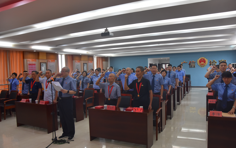 严毅同志带领全体干警重温入党誓词,筑牢永远跟党走的忠诚检魂,坚定新时代新征程奋勇向前的使命担当。