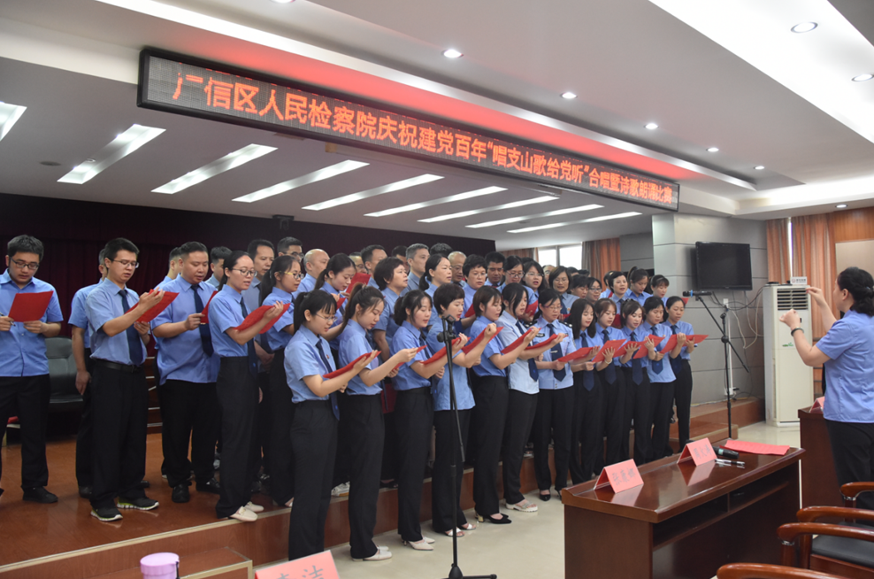 为庆祝中国共产党百年华诞,回顾党的光辉历史,讴歌百年发展成就,激励广大党员干部汲取榜样力量、激发奋进动力。6月29日上午,上饶市广信区人民检察院举办庆祝建党100周年活动,院党组书记、检察长严毅出席会议并讲话,院班子成员、全体干警和退休老党员代表参加活动。