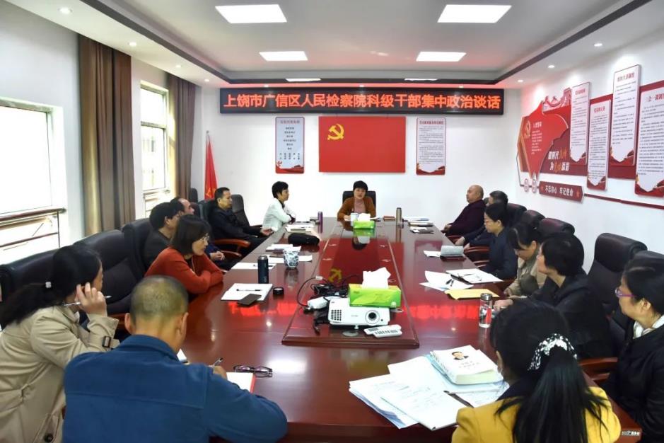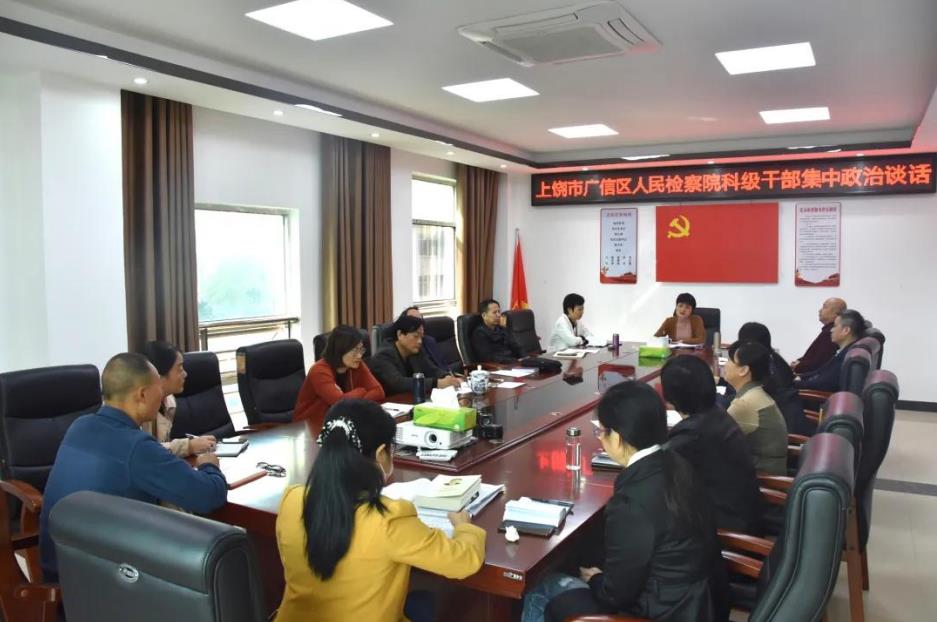 为认真落实政治谈话机制,有效加强“关键少数”干部监督管理,10月29日,上饶市广信区人民检察院党组书记、检察长乐小敏采取集体谈话的形式对全院科级干部开展政治谈话。