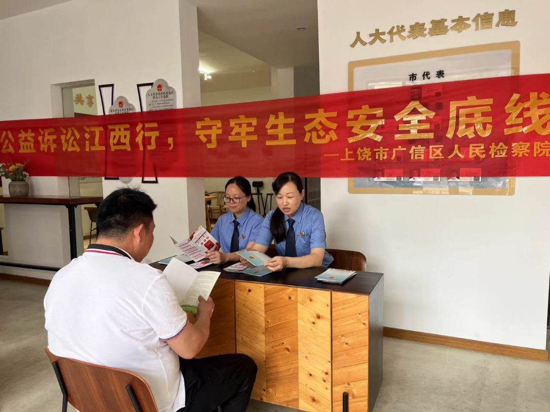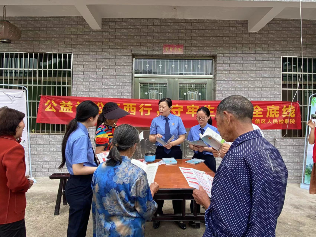 为进一步提升人民群众对公益诉讼检察工作的知晓度、参与度和认可度,增强群众法治意识,凝聚公益保护合力,扎实推进“检护民生”专项行动走深走实。5月30日,广信区人民检察院干警分别到枫岭头镇井边村、华坛山镇开展了以“公益诉讼江西行,守牢生态安全底线”为主题的公益诉讼普法宣传活动。