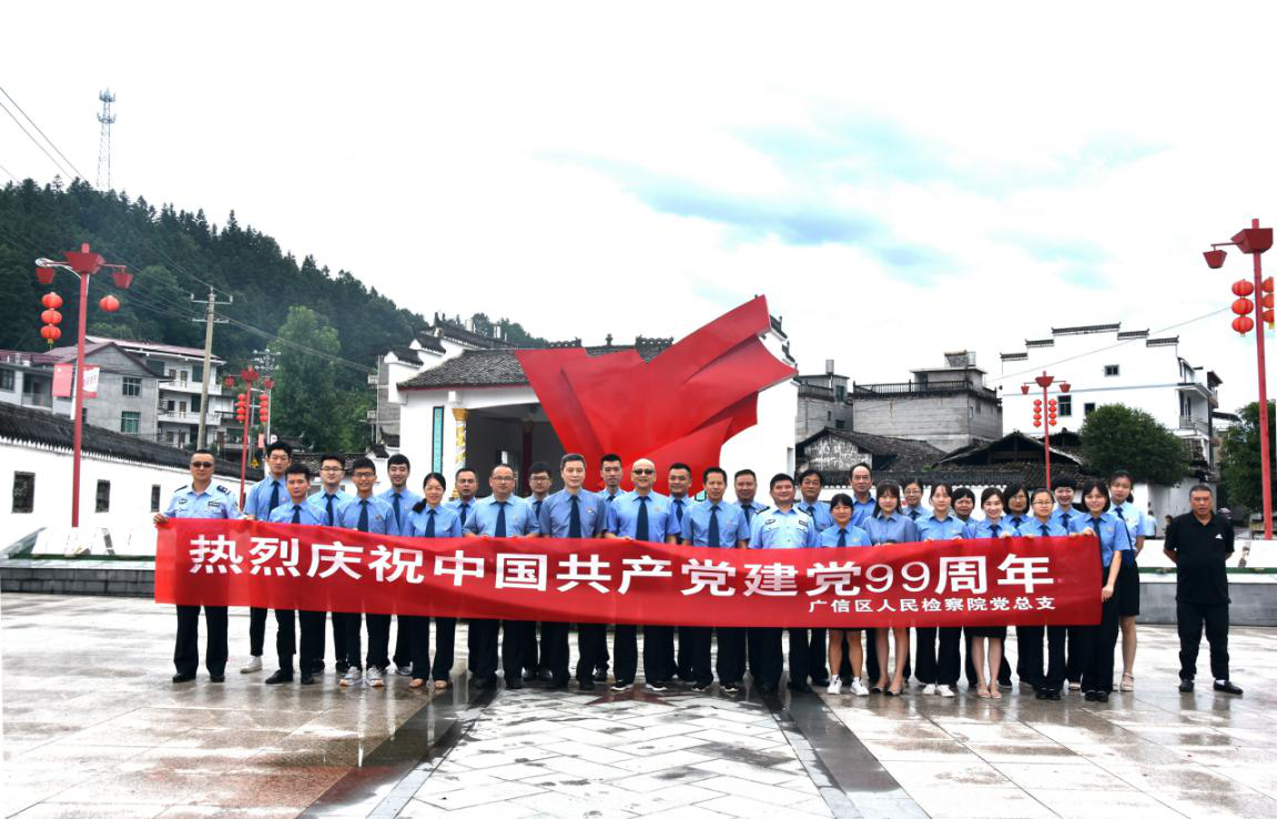 九十九载岁月悠悠,展开的是一幅锦绣画卷;九十九载风雨兼程,成就的是一派盛世辉煌。为庆祝建党99周年,继承和发扬党的优良作风和光荣传统,进一步激发检察机关党组织活力,增强广大党员干警的光荣感、使命感,7月3日,广信区人民检察院组织全体党员在铅山县石塘镇新四军革命旧址开展“追寻红色记忆 、熔铸检察之魂”主题党日活动。