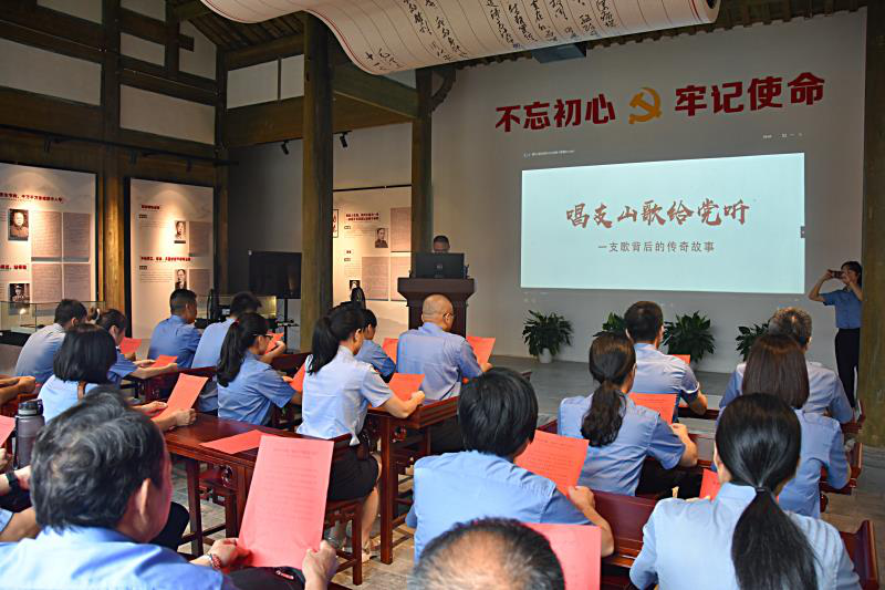 在石塘镇新四军革命旧址,党员干警面向鲜艳的党旗庄严宣誓,通过重温入党誓词,进一步坚定了理想信念,接受了一次灵魂的洗礼,提高了党性修养。在随后开展的“读一封家书”活动中,干警们追寻着革命先烈的足迹,感受革命先烈穿梭于悬崖峭壁之间和敌人斗智斗勇、浴血奋战的英姿和不畏,细心瞻仰每一处“红色”遗址,重温革命历史。