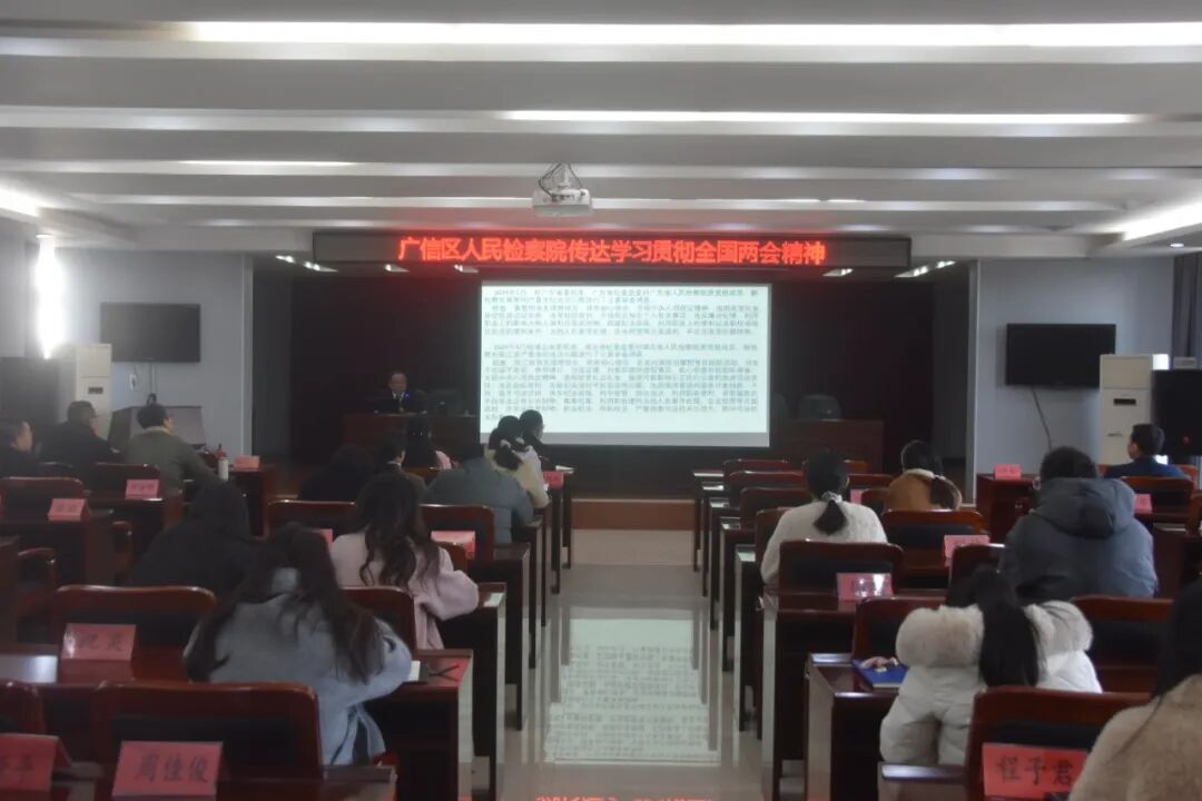 近日,为深入贯彻落实全国两会精神,上饶市广信区人民检察院召开全院干警大会,传达学习贯彻习近平总书记在全国两会期间的重要讲话精神和全国两会精神,贯彻落实最高检、省委、市委、区委和省检察院、市检察院部署,并研究贯彻落实举措。